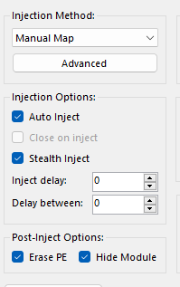 - Поставить параметры инжекта, как ниже на скрине.